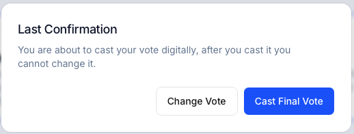 Last Confirmation You are about to cast your vote digitally. After you cast it you cannot change it.